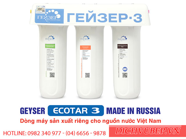 Máy lọc nước GEYSER ECOTAR 3: Với mục tiêu mang lại sản phẩm máy lọc nước nhập khẩu chất lượng cao phù hợp với đặc trưng nguồn nước Việt Nam, sau nhiều năm hợp tác và nghiên cứu, đền đáp những nỗ lực đó năm 2016 Geyser LB Nga chính thức cho ra mắt dòng sản phẩm máy lọc nước Geyser Ecotar 3 được sản xuất riêng cho nguồn nước tại Việt Nam.